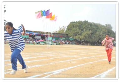 Relay race tests the team spirit, the spirit to perform and to taste the nectar of victory together. Track events included relay race finals for boys and girls and 80 mts dash exclusively for Gents. Floral relay race by tiny tots was very interesting to watch. Ladies joined for a round of musical chair. Within a short period of time students of Abhyasa practiced assiduously and performed Mass Drill in front of the parents and guests. Colorful pompons tied to their wrists made them look like flock of birds flying together. Later, Vice Principal (admn) presented the Annual Sports Report for the year 2011-2012.