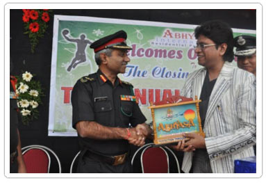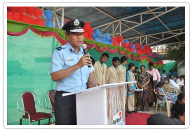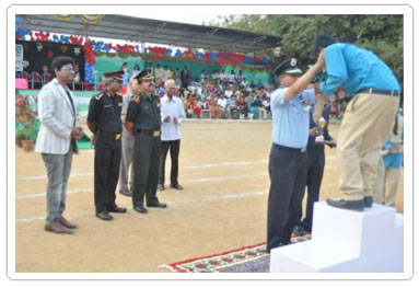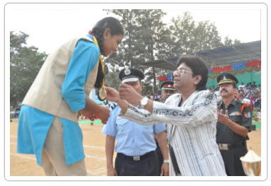 Apart from academic excellence the school had bagged many gold and silver medals in National athletic events and National games and sports. Name a sport and Abhyasites shines in it. Director / Founder Principal appreciated the students in his message requested the Chief Guest to grant NCC in the school level. He also reiterated that students should show more interest in taking up careers in Military, Defense, Navy and Air Force and serve the nation to their best. The Chief Guest addressed the gathering and took inspiration from Swami Vivekananda's quotes. He stressed on how sports and games plays an important role in character building.