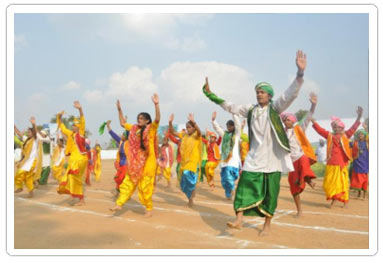 Flamboyant Abhyasites in Punjabi attire and Bhangra mood performed a joyful Bhangra. The backdrop of lush green fields, women busy at their daily chores; churning the curd, fetching water and making pots. The flexes displaying men being busy in the fields and on bullock carts all added the required flavor, to transport the audience in time to a mini Punjabi life style. Respected Governing Body Member, Prof A.S.Shastry welcomed the Chief Guest and the Guests of honor and other dignitary along with the parents.