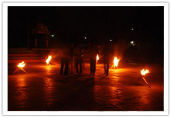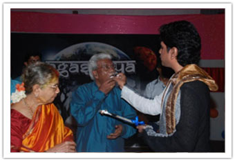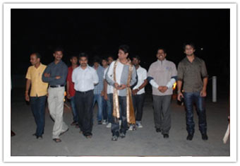 Prior arrangements were made and students practiced for different cultural items without disturbing their academic sessions. As the Principal arrived to the main gate at 06.00 pm along with the Grandparents Sree Rangadass Kalletla and Sreemathi Padmavathi Kalletla, all students welcomed them from the gate to the temple. Mr.Vinaayak distributed sweets to all the students and members of Abhyasa family. He was welcomed to the Play Pen amidst fire which was arranged on the way which was arranged especially for his welcome. Mr.Nikhil Salve (Ex-student, Abhyasa) was requested to honour the Principal with a flower bouquet. Sree Rangadass Kalletla was requested to honour Sreemathi Padmavathi Kalletla with a flower bouquet. A huge cake was cut by Sree Vinaayak and Sreemathi Padmavathi Kalletla. All students were served the cake during their dinner.