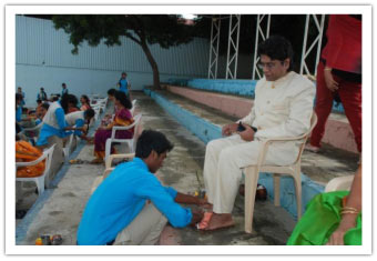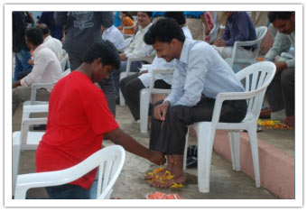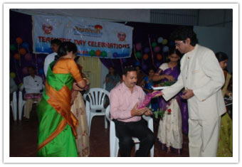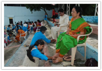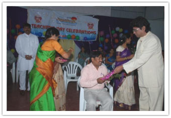 Teachers are always given the highest priority at Abhyasa as the teachers at Abhyasa feel that their students are their banks to deposit their knowledge. The splendid celebrations of teacher's day at Abhyasa started with the traditional "Paadapuja" being offered to the Teachers in amphitheatre at 8 a.m. In Sanskrit "GU" means "Agnana" and "RU" means "to remove", so Guru always illuminates his students with his knowledge and in the same process he also learns more. Abhyasa Teachers are always on this task and they work for the overall development of the students as per the vision and mission of Abhyasa. Abhyasa students did Paada Pooja to their teachers and administrative staff members showing their love and gratitude for the love and concern shown towards them by the Abhaysa staff. Those were the most happiest moments for Gurus and precious moments for students as they expressed their love and concern to each other. Founder principal Sri Vinaayaka Kalleetla honoured his teacher and present in-charge Principal Mrs.Murthy being an icon of Abhyasa students.