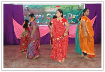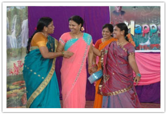 Not disturbing the academic sessions, the programme was planned in the morning hours from 08.00 AM to 11.00 AM. Teachers conducted a mock yet an ideal assembly showcasing for the students. The cultural programme started with a classical dance by Mr.Sreenivas Rao followed by another classical dance by Mrs.Suvarna and Miss. Aravinda which thrilled the audience. Later Mr.Chandra Mohan, Vice-Princpal II has entertained the students with his magic show. All teachers have sung the rhyme, "Old Mcdonald's had a firm" which entertained the students to a great extent. Under the supervision of Mr.Raveendran and Mr.Chinnappa, a comedy drama "REFUND" was screened which made the students learn a great point out of the drama which had a comic theme. Mr.Biswal, Mr.Zakaria and Mr.Sreenadha Sarma have sung songs which was a feast for the music lovers. The dance by Mr. and Mrs.Chinnappa created a great amount momentum among the students. The same was followed by a folk song lead by Mrs.Suvarna and team which was enjoyed very much by the students. The Punjaabi dance by Mr.Amith Balla and team created ripples among the students. The enacted folk song by the team of Matrons lead by Mrs.Triveni was quite entertaining and students have enjoyed the same to a great extent. This was followed by a Telugu Drama "Pelli Kaani Prasad" which enthralled the students with its comic note greatly. The Dandia dance performance by the team of teachers lead by Mrs.Seeta was well received by the students. This time to the surprise of the all students, different awards as per the merits of each section were given along with chocolates for each and every student of the class including the class of free education. The programme ended with a final message from our respected In-Charge Principal to all the staff and students followed by National Anthem.