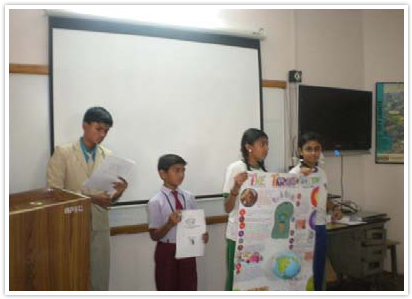 On the objective of making students the educator of climate change, they were trained to spread awareness related to threat of Climate Change, the need to adopt measures to reduce emission of green house gases and conservation of natural resources for sustainable environment.
