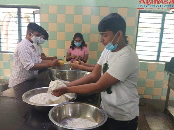 The students of the COOKERY Club prepared Al00-fry using Corn flour and bread crumbs for their evening snacks. They learnt how to use the right combination of ingredients and nutrients. It was a perfect manifestation of 'TEAM WORK' one of the Abhyasa values.