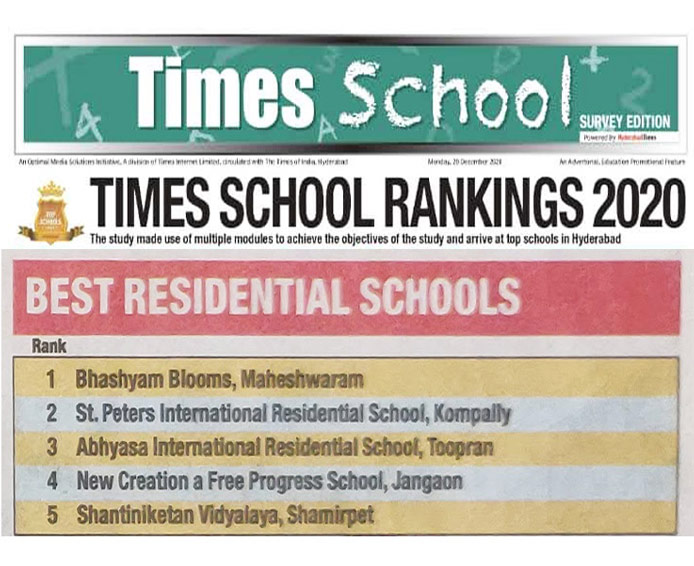 The Times of India, Hyderabad has done a secondary research of more than 300 schools with the help of internet, magazines and other publications. These schools were then rated on various parameters like general information of the School, Establishment, Affiliation, Infrastructure & facilities, Sports facilities, Cultural/extra-curricular facilities, Medical facilities, Teachers/ Academic Infrastructure, Social Integration, Exchange programs and global exposure, Awards etc. to arrive at the final rankings. These Rankings were published in the Times School Survey Edition Hyderabad Edition on 28th December 2020.