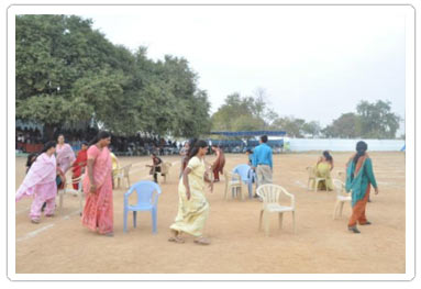 Relay race tests the team spirit, the spirit to perform and to taste the nectar of victory together. Track events included relay race finals for boys and girls and 80 mts dash exclusively for Gents. Floral relay race by tiny tots was very interesting to watch. Ladies joined for a round of musical chair. Within a short period of time students of Abhyasa practiced assiduously and performed Mass Drill in front of the parents and guests. Colorful pompons tied to their wrists made them look like flock of birds flying together. Later, Vice Principal (admn) presented the Annual Sports Report for the year 2011-2012.