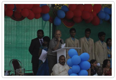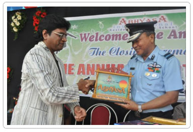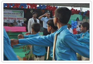 Apart from academic excellence the school had bagged many gold and silver medals in National athletic events and National games and sports. Name a sport and Abhyasites shines in it. Director / Founder Principal appreciated the students in his message requested the Chief Guest to grant NCC in the school level. He also reiterated that students should show more interest in taking up careers in Military, Defense, Navy and Air Force and serve the nation to their best. The Chief Guest addressed the gathering and took inspiration from Swami Vivekananda's quotes. He stressed on how sports and games plays an important role in character building.