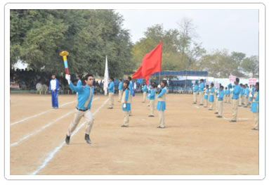Every ceremony has its own importance. The history of the torch comes all the way from Athens. Athena the land of Greeks but at school as per the custom it was lit from Baba's Lamp. Bhagwan Sri Satya Sai Baba has been the inspiration and the spirit of the school since its inception. Sports captain received the torch from the Chief Guest and other National level players and National athletes were the torch bearers till it reached the cauldron and the flame was set alight. The flame remained alighted till the end of the programme. The Principal of the school administered the oath to the parade contingent.