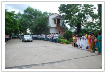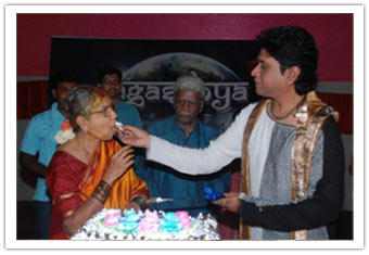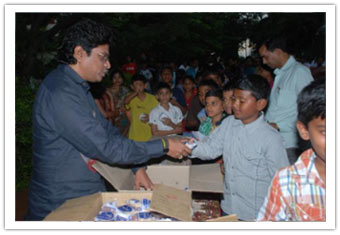 Prior arrangements were made and students practiced for different cultural items without disturbing their academic sessions. As the Principal arrived to the main gate at 06.00 pm along with the Grandparents Sree Rangadass Kalletla and Sreemathi Padmavathi Kalletla, all students welcomed them from the gate to the temple. Mr.Vinaayak distributed sweets to all the students and members of Abhyasa family. He was welcomed to the Play Pen amidst fire which was arranged on the way which was arranged especially for his welcome. Mr.Nikhil Salve (Ex-student, Abhyasa) was requested to honour the Principal with a flower bouquet. Sree Rangadass Kalletla was requested to honour Sreemathi Padmavathi Kalletla with a flower bouquet. A huge cake was cut by Sree Vinaayak and Sreemathi Padmavathi Kalletla. All students were served the cake during their dinner.