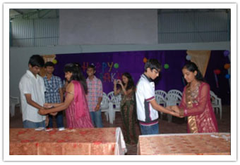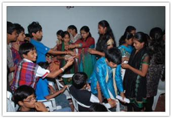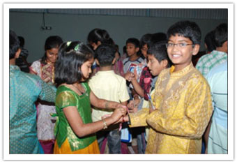 On 13.08.2011, the Rakhee celebrations were conducted on the campus. No academic session was disturbed for the same. Students have managed the programme in an excellent. Mrs.Veena Venugopal, Vice-Principal (Administration) has tied Rakhis to all the male staff and offered sweets proving the fact once again that we always stand as a family. Later the importance of Rakhi festival and the importance of the relation of a brother and sister, was explained by the Academic Co-ordinator, Mr.V.B.K.Murthy.
