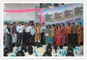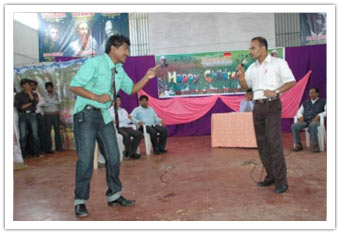 Not disturbing the academic sessions, the programme was planned in the morning hours from 08.00 AM to 11.00 AM. Teachers conducted a mock yet an ideal assembly showcasing for the students. The cultural programme started with a classical dance by Mr.Sreenivas Rao followed by another classical dance by Mrs.Suvarna and Miss. Aravinda which thrilled the audience. Later Mr.Chandra Mohan, Vice-Princpal II has entertained the students with his magic show. All teachers have sung the rhyme, "Old Mcdonald's had a firm" which entertained the students to a great extent. Under the supervision of Mr.Raveendran and Mr.Chinnappa, a comedy drama "REFUND" was screened which made the students learn a great point out of the drama which had a comic theme. Mr.Biswal, Mr.Zakaria and Mr.Sreenadha Sarma have sung songs which was a feast for the music lovers. The dance by Mr. and Mrs.Chinnappa created a great amount momentum among the students. The same was followed by a folk song lead by Mrs.Suvarna and team which was enjoyed very much by the students. The Punjaabi dance by Mr.Amith Balla and team created ripples among the students. The enacted folk song by the team of Matrons lead by Mrs.Triveni was quite entertaining and students have enjoyed the same to a great extent. This was followed by a Telugu Drama "Pelli Kaani Prasad" which enthralled the students with its comic note greatly. The Dandia dance performance by the team of teachers lead by Mrs.Seeta was well received by the students. This time to the surprise of the all students, different awards as per the merits of each section were given along with chocolates for each and every student of the class including the class of free education. The programme ended with a final message from our respected In-Charge Principal to all the staff and students followed by National Anthem.